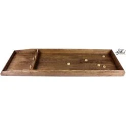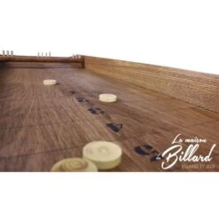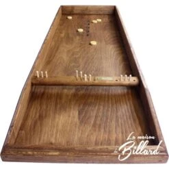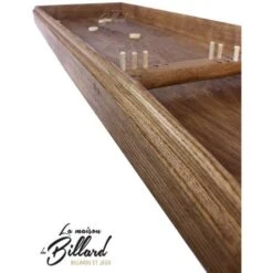 Vous remarquerez Ă©galement l’assemblage du cadre qui est fait Ă l’aide de chevilles en bois. Un procĂ©dĂ© d’assemblage ancestral qui donne beaucoup de charme Ă ce jeu. Afin de donner un cĂ´tĂ© authentique et souligner l’aspect traditionnel de ce jeu en bois, le palet anglais est entièrement moulurĂ© et cirĂ© Ă la main.