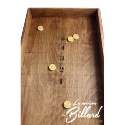 Ce jeu traditionnel en bois datant du XIXe siècle est souvent prĂ©sentĂ© sous forme de petit plateau qui se pose sur le comptoir du pub ! Les Anglais y jouent Ă tour de rĂ´le et le jeu passe de table en table. C’est en rĂ©alitĂ© un jeu d’argent oĂą le but est d’ĂŞtre le premier Ă avoir mis une pièce entre chaque ligne. Celui qui remporte la partie paie un verre Ă son adversaire.