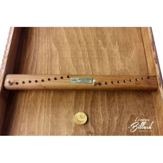 Vous remarquerez le caractère authentique du jeu avec les moulures présentes sur l’ensemble du cadre. Les palets sont également rigoureusement sélectionnés. Ceux-ci sont faits en buis, un bois naturellement lisse.