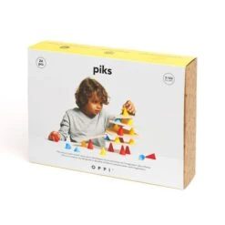 Piks est un jeu de construction et d’équilibre. Le joueur est muni de planchettes en bois massif et de cônes en silicone de différentes tailles. Il est invité à créer une structure originale, à partir d’une carte ou de sa simple imagination. Les possibilités sont infinies !