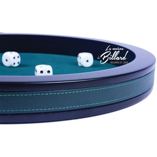 Magnifique piste de dĂ©s pour jouer au yam’, 421 et au 10 000… GainĂ©e simili-cuir vert, fond insonorisĂ© en feutre vert.