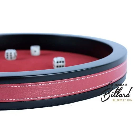 TrĂšs belle piste de dĂ©s avec fond de jeu en rouge et cadre arrondi laquĂ© noir. Pourtour de la piste dĂ©corĂ© d’une bande de simili-cuir rouge et d’une surpiqĂ»re. TrĂšs Ă©lĂ©gante cette piste de jeu sera aussi dĂ©corative que ludique. fourni avec 5 dĂ©s (2 x 2cm) vert finition nacrĂ©