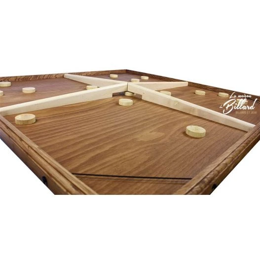 Un grand classique parmi notre collection de jeux géants en bois. Nous avons décliné la planche à rebond en version géante pour 4 joueurs mis en vis-à-vis pour plus de compétion. Jeu d’adresse et de rapidité, création La Maison du billard 2014.