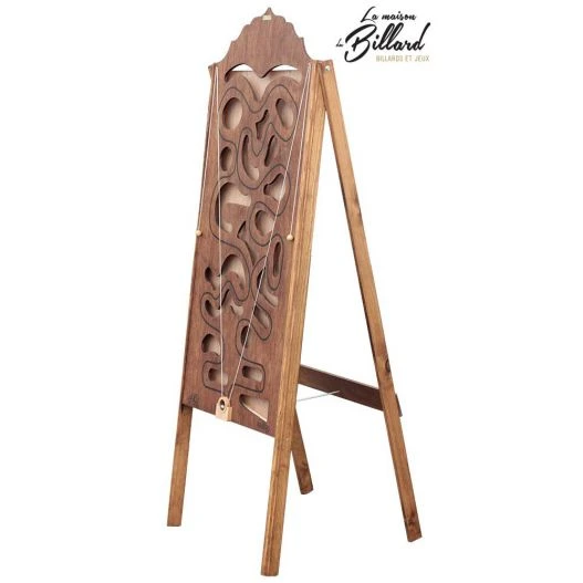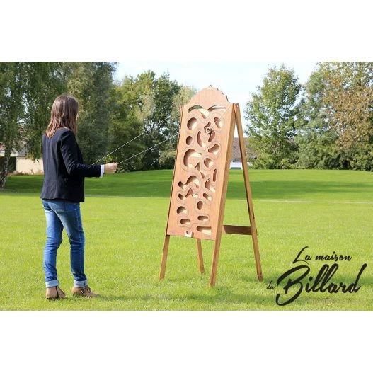 le jeu géant en bois planche à trous a été pensé pour une utilisation professionnelle. Effectivement celui-ci est facile à monter et démonter grâce à son pied rétractable. Lorsque la bille en métal tombe dans un trou, celle-ci ne tombe pas au sol mais revient dans un emplacement adéquat situé en bas à droite du jeu.