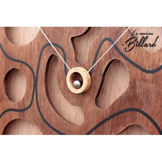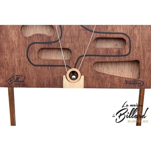 En dĂ©but de partie la bille mĂ©tallique est logĂ©e dans une bague en bois, positionnĂ©e dans son receptacle en bas du jeu. La bague en bois est reliĂ©e par 2 ficelles permettant de guider la bille sur les courbes du parcours. Le but pour le joueur sera de faire parcourir la bille le long du parcours et revenir sur le point de dĂ©part sans l’avoir perdu entre deux !