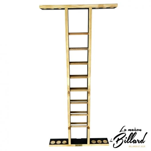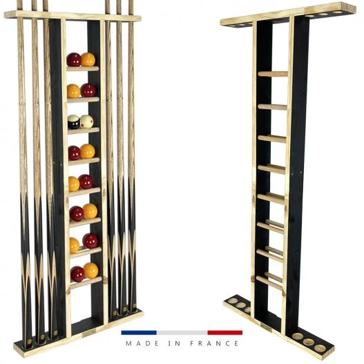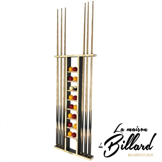 Découvrez ce nouveau porte-queues au style brut et industriel qui vous permettra de ranger 6 queues de billard et un jeu de billes complet au centre. Vous pourrez ainsi ranger tout votre matériel avec style.