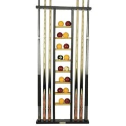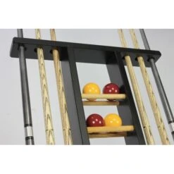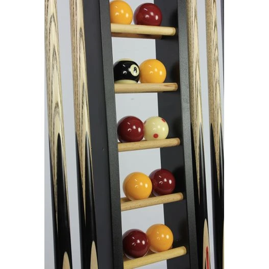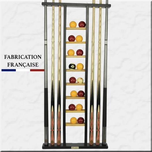 Pour ce projet nous voulions un porte-queues facile à placer sur un mur et qui puisse mettre en valeur vos accessoires de jeu. Pour réussir ce chalenge on a décidé de partir sur un porte-queues en H permettant de ranger votre jeu de billes au centre (2 billes à chaque étage) et 3 queues de chaque côté. C’est symétrique et très esthétique.
