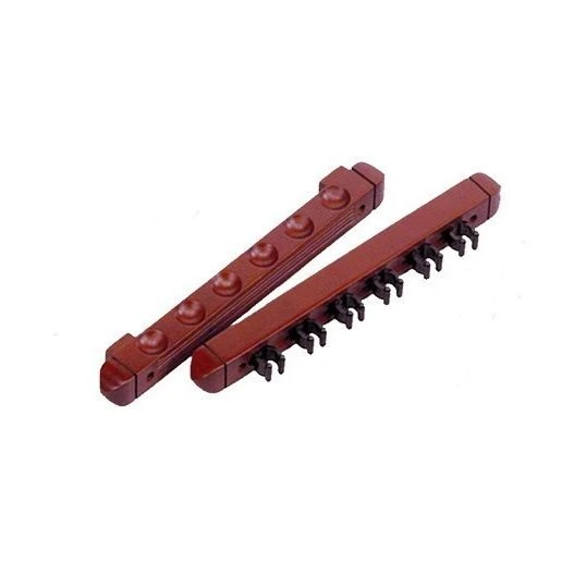 Ce porte queues en bois en 2 parties et de couleur acajou est conçu pour ranger 6 queues de billard.