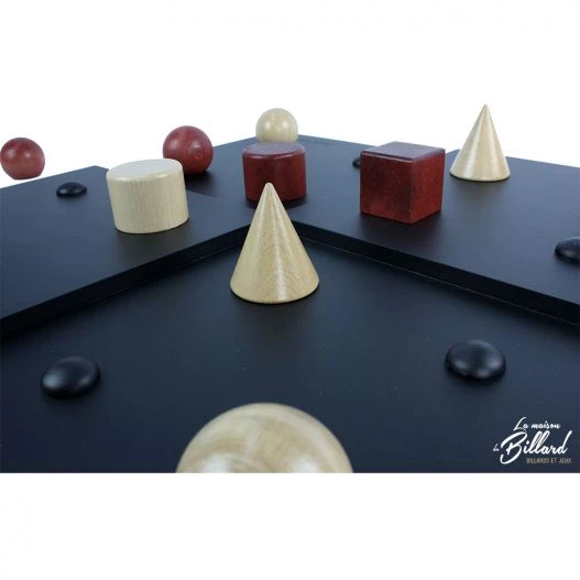 Les pièces sont réalisées dans du bois massif. Le design du jeu est plutôt moderne et se laisse facilement exposer sur une table ou une console. C’est un excellent jeu à offrir à un couple de joueurs car il se joue à 2. Jeu créé par Gigamic, entreprise situé dans les Hauts de France.