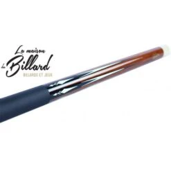 Conformément aux exigences des joueurs de billard Français, la jonction en 1/2 de la queue est faite en bois. Pour les joueurs de Carambole ayant les mains souvent moites, le fut de cette queue de billard français posséde un grip permettant une meilleur adhérence lors des coups.