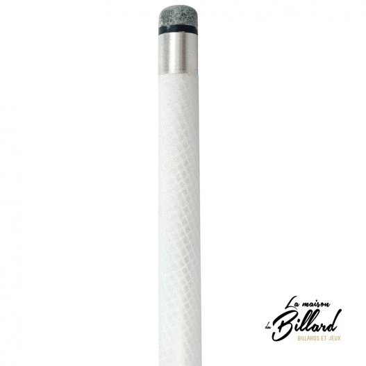 Nous ne voulions pas que vous ayez l’impression d’une queue de billard trop légère, malgré le côté fibre effet carbone. C’est pourquoi nous avons souhaité que le fût soit lesté, afin de vous offrir un poids idéal de 480 grammes. Ainsi, le fût lesté vous permettra de doser correctement la puissance de vos tirs.