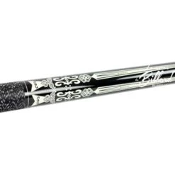 Ce qui plaĂ®t beaucoup sur cette canne sont les dĂ©tails de fabrication. Tout d’abord, on remarque que le fĂ»t est fait en finition laquĂ©e et ornĂ© d’illustrations blanches très dĂ©taillĂ©es. Les incrustations de bagues mĂ©talliques sur le fĂ»t et la flèche apportent Ă©galement beaucoup d’Ă©lĂ©gance Ă cette queue de billard amĂ©ricain et soulignent les finitions soignĂ©es du produit.Â