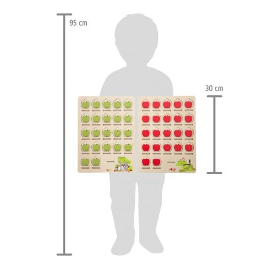 - Plateau de jeu env. 30 x 23 x 1 cm, pommes env. 3,5 x 3 x 0,5 cm