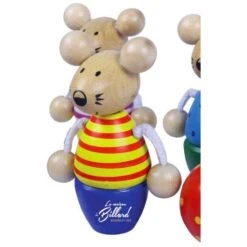 Un beau jeu de quilles traditionnelles qui amusera les petits. Ces petites quilles en forme de souris feront d’elle un jouet en bois ludique avec lesquelles l’enfant pourra jouet aux quilles ou s’inventer des histoires.