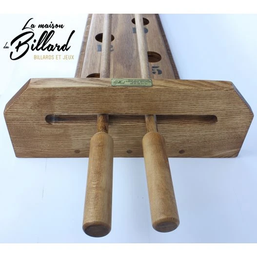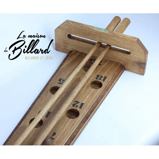 Ce jouet en bois ancien provient des portes-queues installés dans les salles de billards ou cafés pour ranger les queues. Des joueurs de billard se sont un jour amusés à faire rouler une boule entre deux queues sur un porte-queue posé à plat. C’est comme cela que le jeu en bois Roll Up est né !