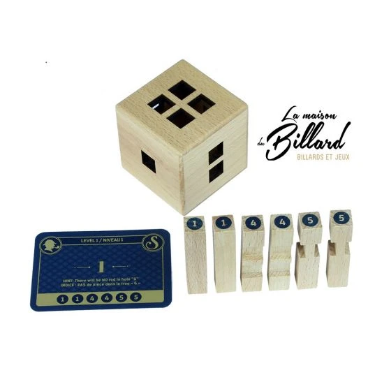 52 cartes dĂ©fis, 7 niveaux de difficultĂ© progressifs. Sur la face de la carte on vous indique les piĂšces de puzzle Ă prendre. Par exemple 2 piĂšces N°1, 2 piĂšces N°4, et 2 piĂšces N°5. Le but est d’insĂ©rer COMPLETEMENT chaque piĂšce dans le cube sans que celle ci ne dĂ©passe !Â