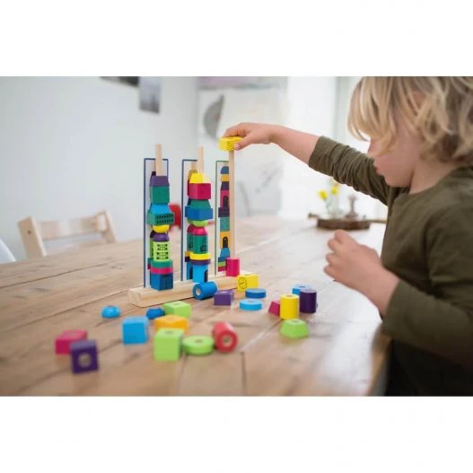 Créez des tours colorées avec ce jeu éducatif. Le rêve de tout petit architecte et de créer les plus belles tours.