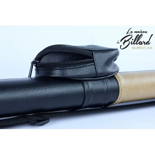 Votre magasin specialiste vous propose un Ă©tui de rangement sobre et Ă©lĂ©gant en finition simili-cuir. Il vous permettra de ranger une queue de billard 1/2 et de ranger d’autres accessoires Ă l’intĂ©rieur de la pochette extĂ©rieur.Â