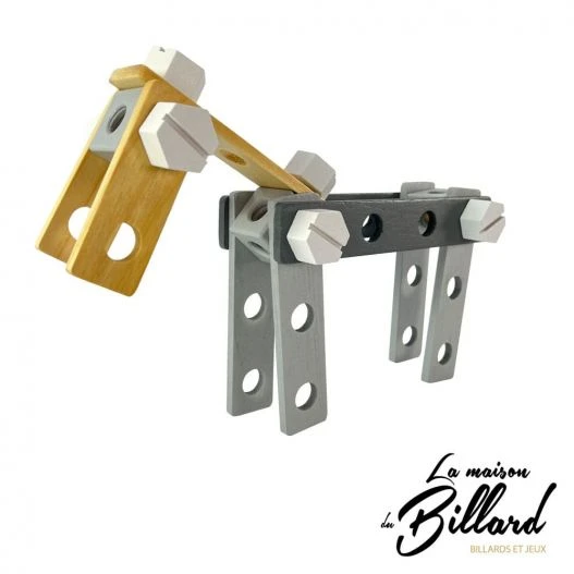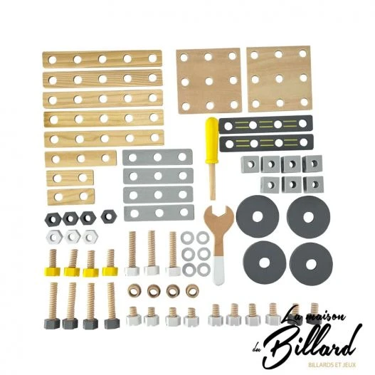Offrez Ă votre enfant un jouet ludique, crĂ©atif et Ă©cologique avec ce kit de construction tout en bois. Parfait pour les bricoleurs en herbe, le jeu ne contient pas moins de 67 pièces Ă assembler, Ă visser, Ă dĂ©visser… Pour laisser la part belle Ă la crĂ©ativitĂ© de vos tout-petits.Â
